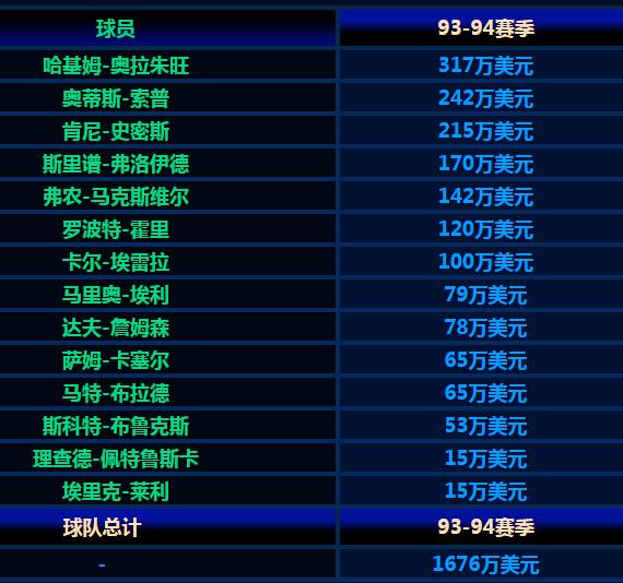 火箭VS魔术 奥尼尔 和 奥拉朱旺的 数据