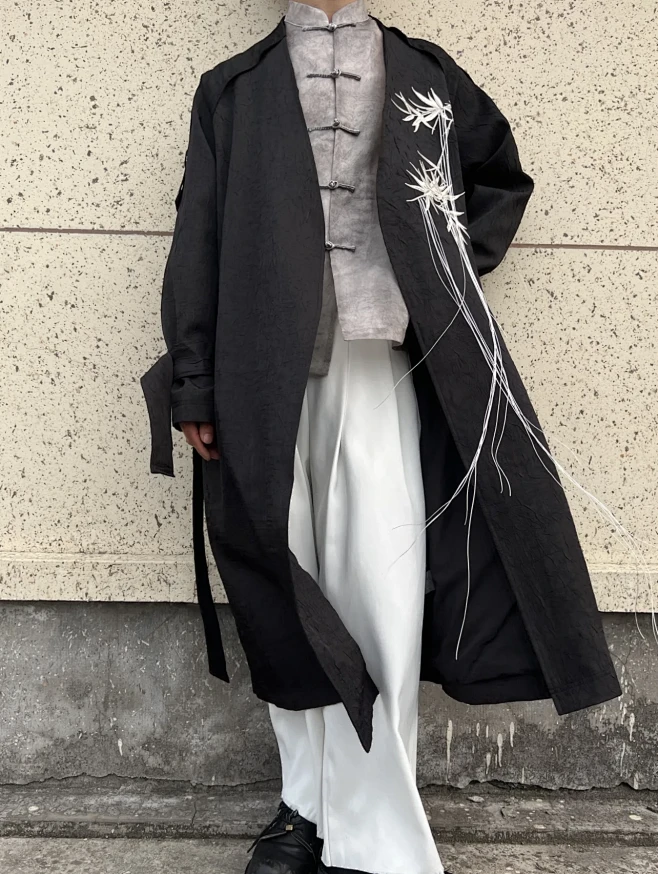 - 搭配:改良箭袖长衫 + 垂感阔腿裤 + 手工德比鞋