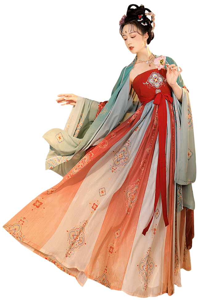 汉服体系按朝代分为唐制(齐胸襦裙)、宋制(褙子+百迭裙)、明制(马面裙+竖领长衫)三大主流形制,遵循「交领右衽」「系带隐扣」等核心形制规范。